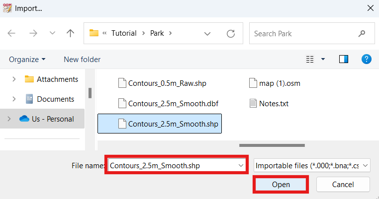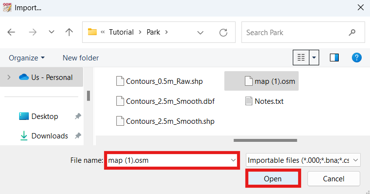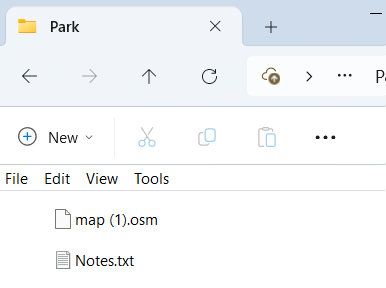 - You should now have one or more *.OSM files along with the Notes.txt file in a folder on your computer, named after the name of your map or "Park" in our case.