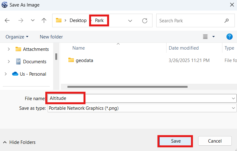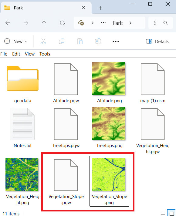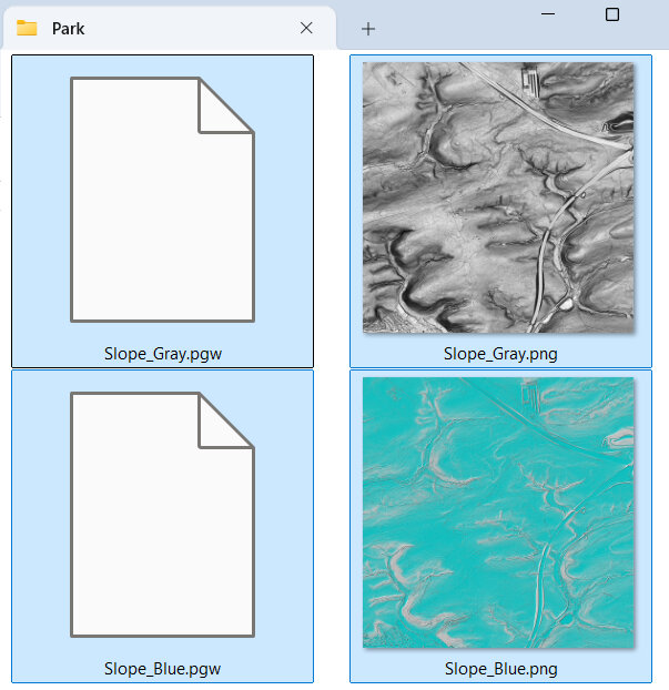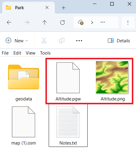 - You should now have an Altitude image (PNG) and world file (PGW) in your Park folder.