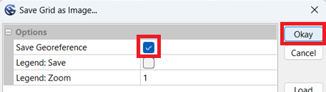 - Ensure "Save Georeference" is checked. "Legend" can remain un-checked.