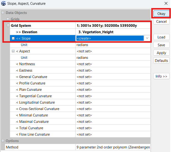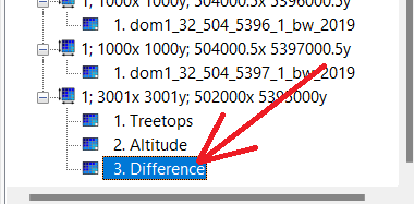- Examine the quantity of columns and rows. In this example we see 3001. These numbers will have to exactly match the dimensions when we create the Treetop Elevation Mosaic in the next step.