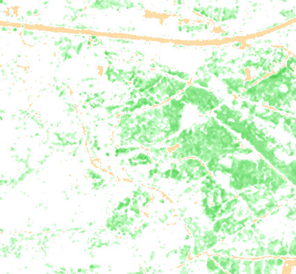 NOTE: Although some of the narrow rides in this image have not been marked, the narrow rides are so prominent on this image we would probably want to draw purple lines along each of these, to field-check and confirm they are still mappable as narrow rides (symbol 508), something else, or nothing at all.