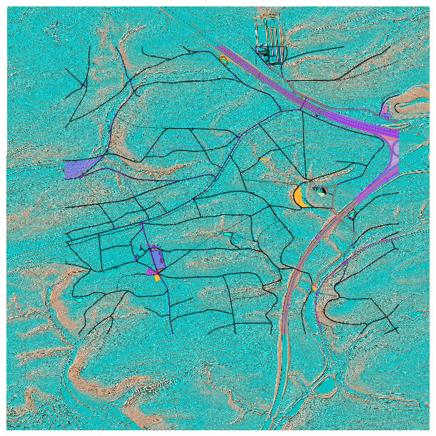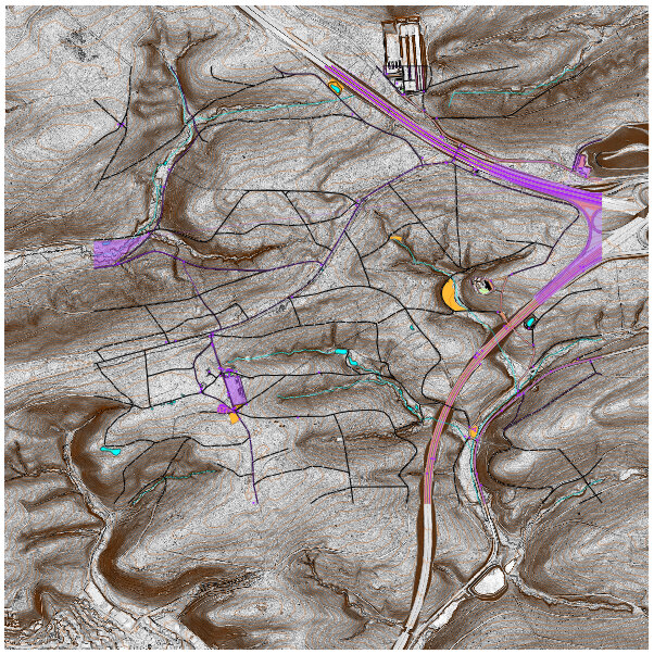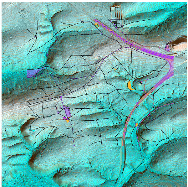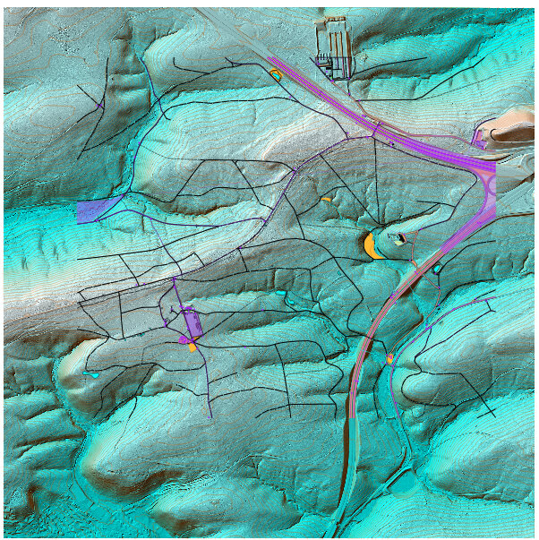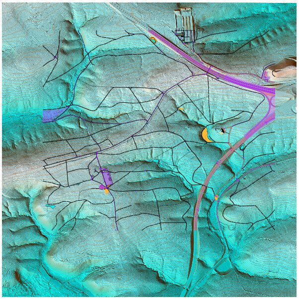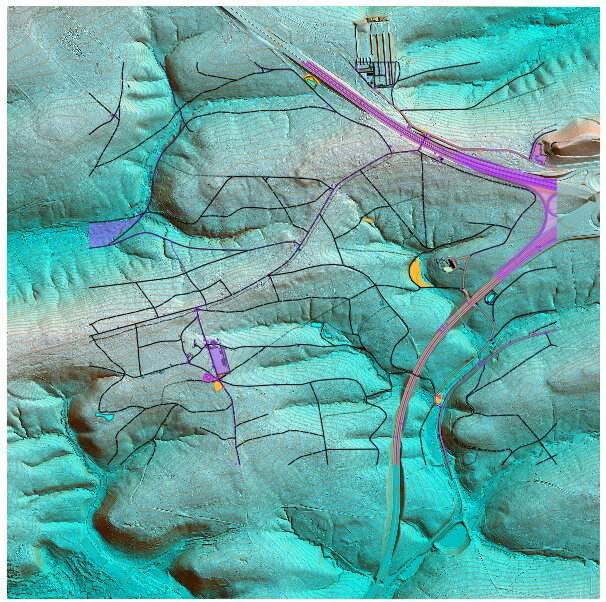 - Go through and make subtle corrections to any stuff you added or altered from the original map. For example, examine any new roads, and use LIDAR data to attempt to make them more perfect (see previous steps).