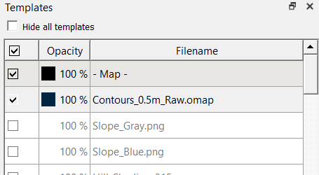 - Load the GPX files as templates into the map file, if they are not automatically loaded. The GPX files may only exist if you enabled "record my tracks" on the mobile version of OpenOrienteering Mapper.
